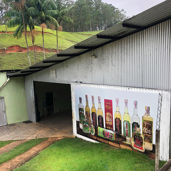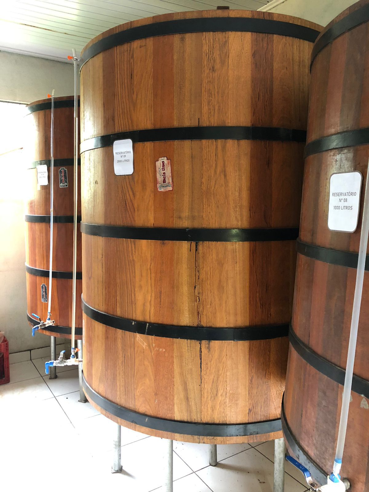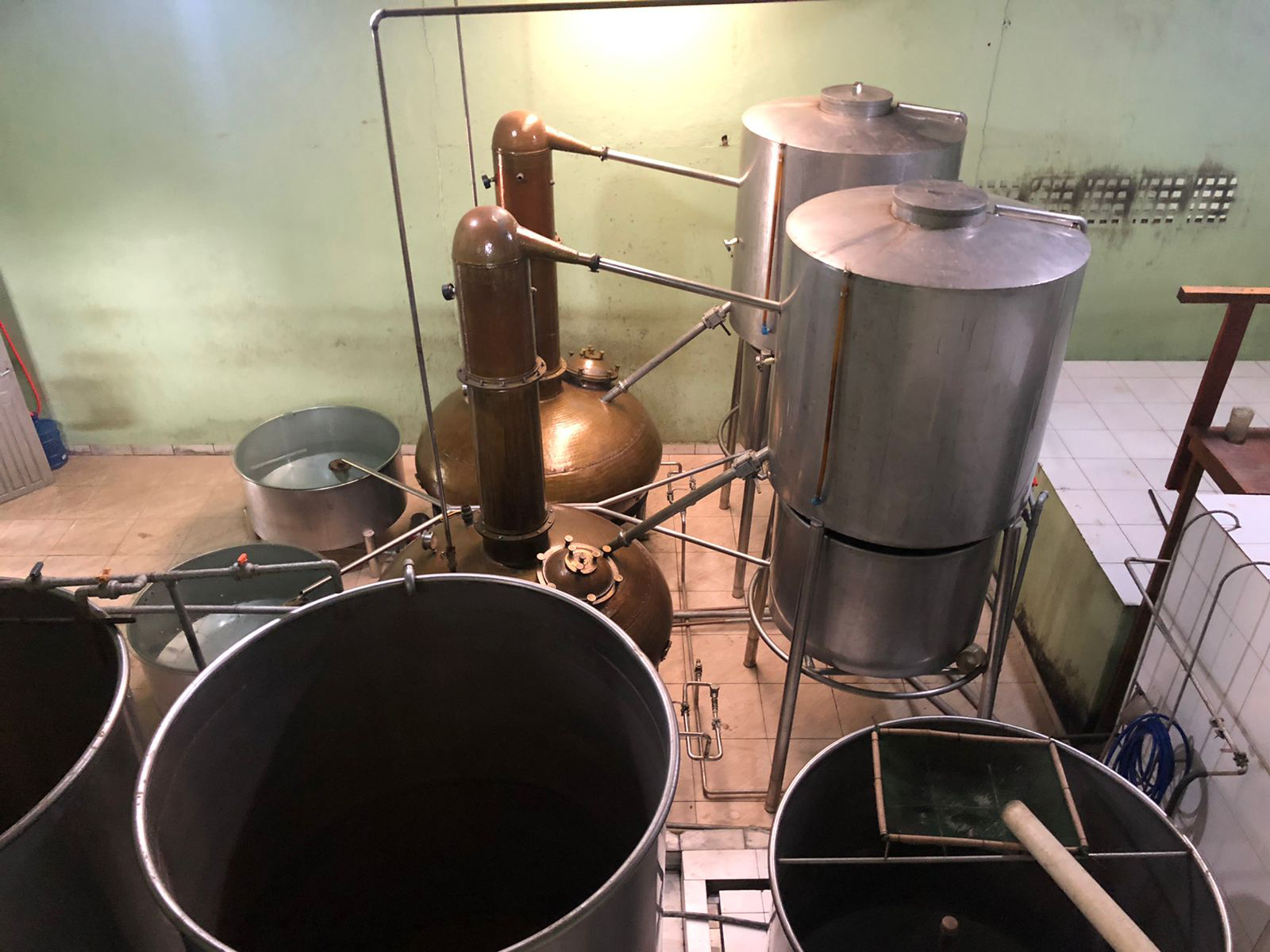 Estamos equipados com máquina rotuladora e de engarrafamento, alambique de cobre, tanques de inox, caldeira, engenho com picador e barris de madeira. Nos dividimos em setores.